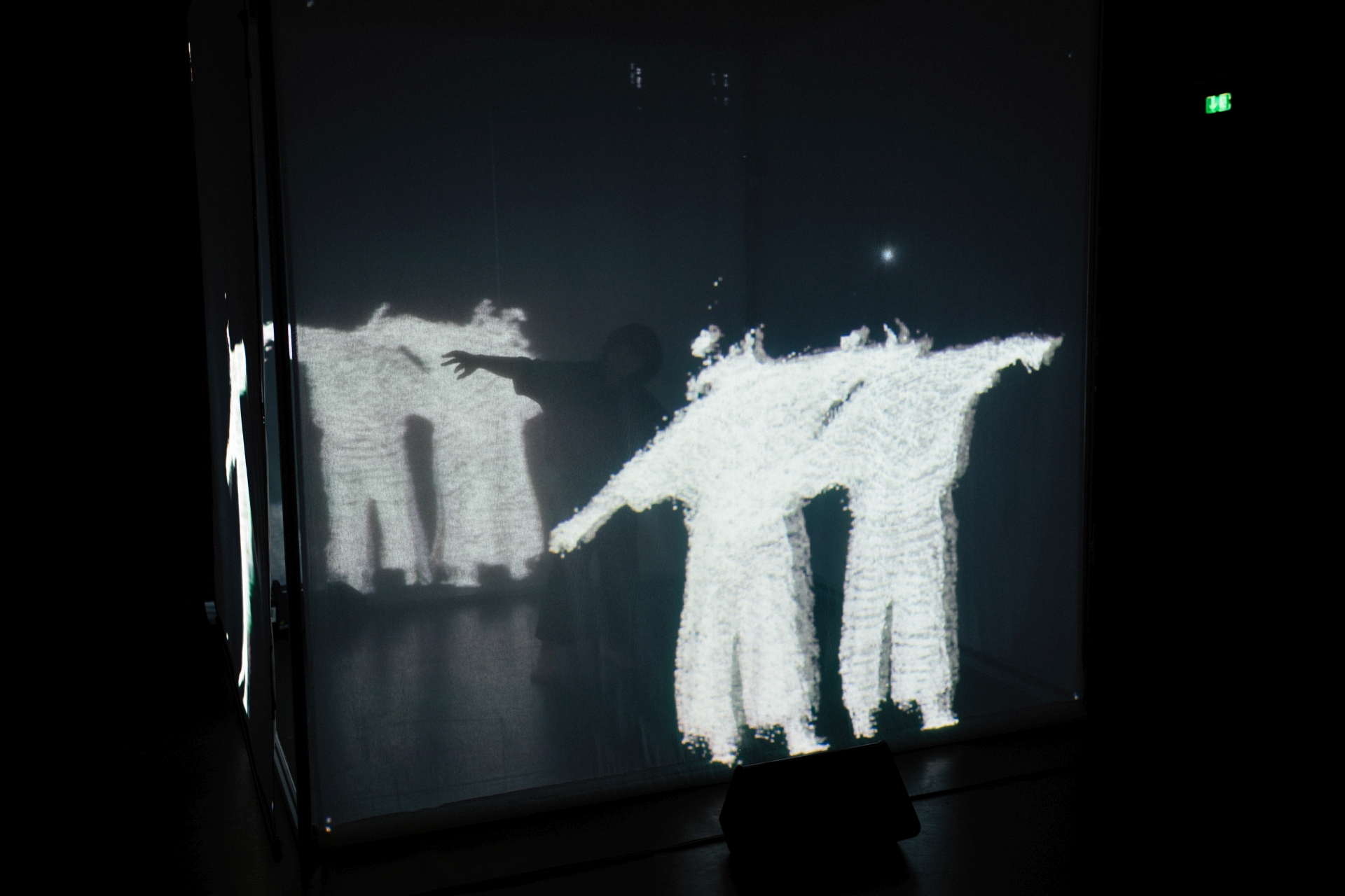 Media artist Slava Romanov designs real-time visuals, depth-sensor tracking, and projection mapping - making the digital shadow appear as point-cloud bodies, particles, and AI-reinterpreted figures that answer the performer back.