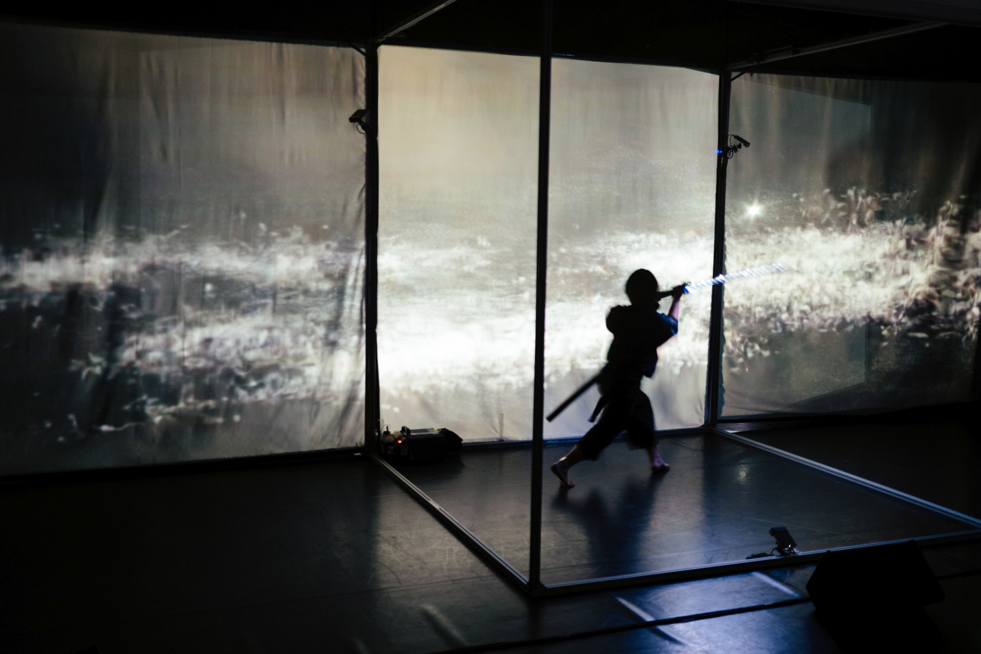 The audience witnesses a fragile dialogue between body and double, shadow and source, analogue and digital - a choreography of presence and disappearance.